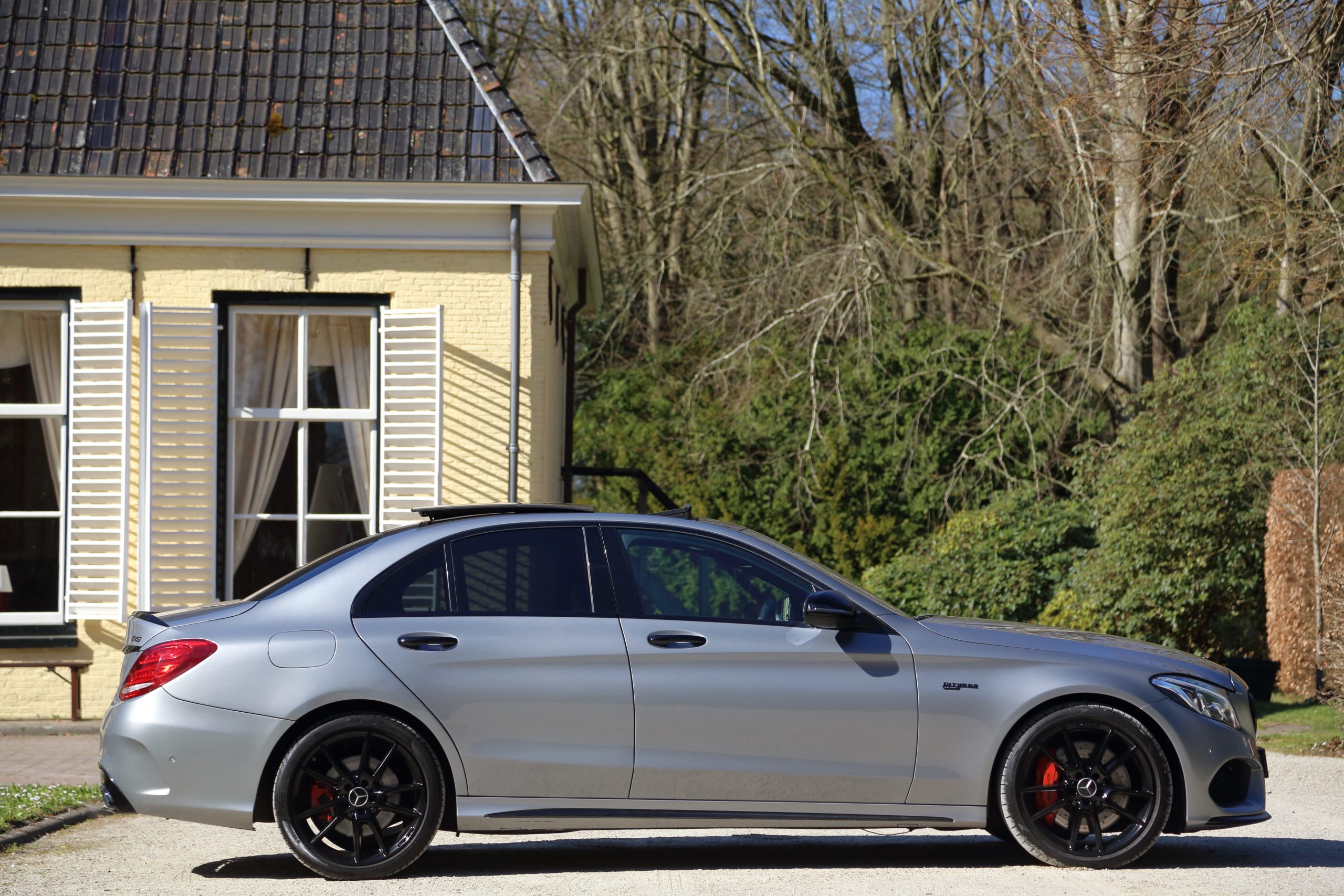 Deze bomvolle Mercedes-Benz C43 AMG, waarbij alle mogelijke opties op de optielijst zijn aangekruist. In 2016 van de productieband gerold in Bremen met een krachtige 3 liter 6-cilinder BiTurbo benzine motor met een standaard vermogen van 367 pk, aangezien dit nog niet genoeg was is het voertuig professioneel getuned naar 430 pk bij Essing Performance Centre. En geloof ons, deze raket is asociaal snel en produceert een geluid dat in te stellen is naar smaak middels een afstandsbediening.