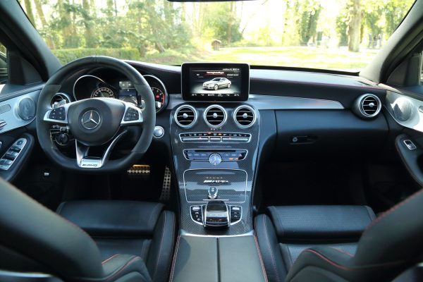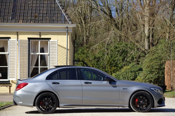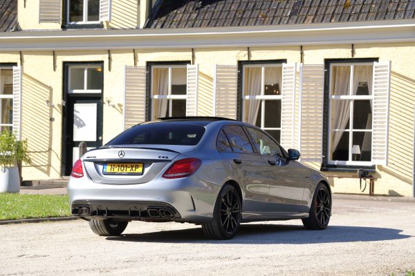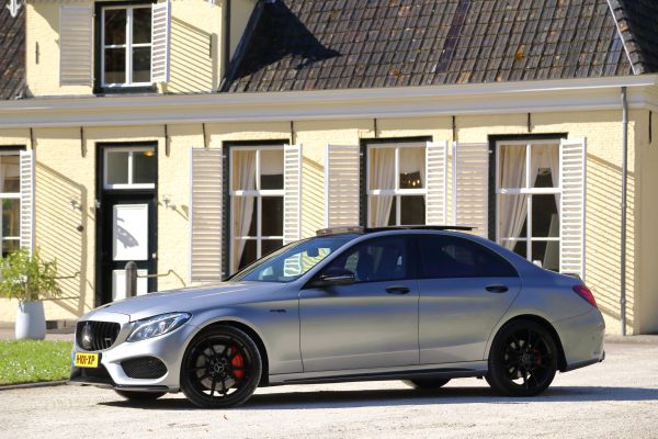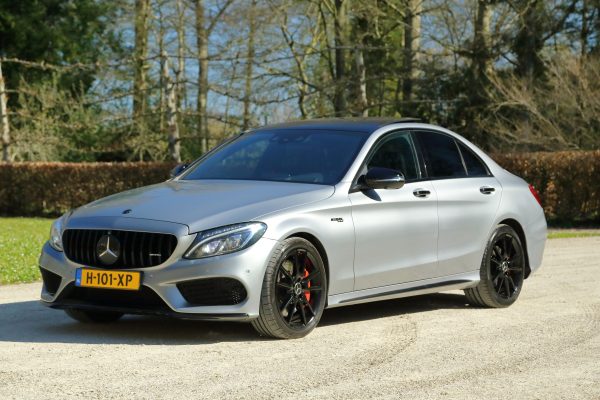 Deze bomvolle Mercedes-Benz C43 AMG, waarbij alle mogelijke opties op de optielijst zijn aangekruist. In 2016 van de productieband gerold in Bremen met een krachtige 3 liter 6-cilinder BiTurbo benzine motor met een standaard vermogen van 367 pk, aangezien dit nog niet genoeg was is het voertuig professioneel getuned naar 430 pk bij Essing Performance Centre. En geloof ons, deze raket is asociaal snel en produceert een geluid dat in te stellen is naar smaak middels een afstandsbediening.